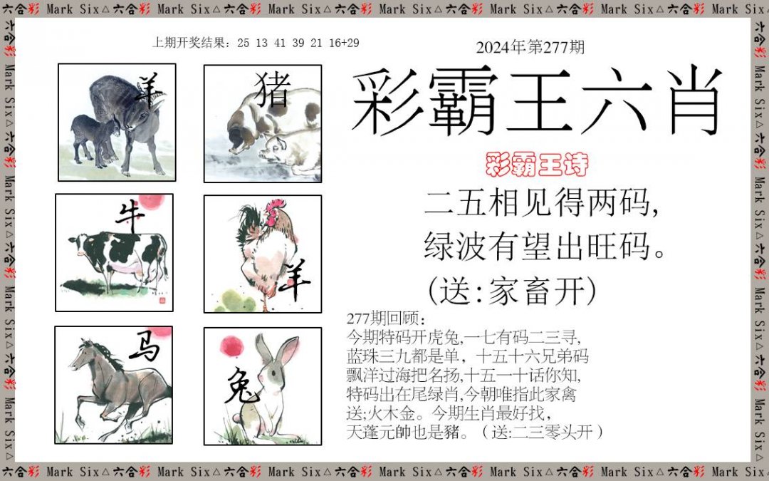 2024277期:彩霸王六肖